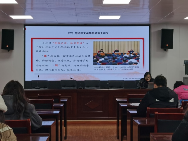 为深入学习贯彻习近平文化思想,进一步坚定文化自信,12月19日上午,公司研究生党支部在院办211报告厅组织学习习近平文化思想。公司习近平新时代中国特色社会主义思想研究生宣讲团成员黎丽菁作宣讲,支部全体党员参加活动。