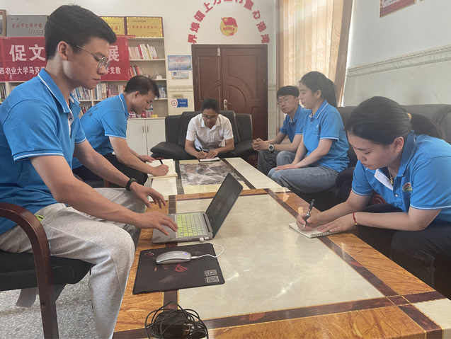 “我们要牢记习近平总书记‘马院姓马,在马言马’的指示精神,坚持以学铸魂,做到思想引领‘不断档’、理论学习‘不掉线’”,指导老师黄以胜博士对队员们提出要求。“三下乡”期间,营队优化顶层设计,通过自主学习、队员领学、一线课堂、学习研讨等形式深化学习,做到天天有学习、有感悟、有总结。营队坚持“让有信仰的人讲信仰”“传道者自己首先要明道、信道”“坚持教育者先受教育”的原则,围绕党的二十大报告、《习近平著作选读》第一二卷、习近平总书记在文化传承发展座谈会上的重要讲话精神、习近平总书记在2022年中央农村工作会议上的重要讲话精神、2023年中央一号文件等内容进行了重点学习。大家在追寻“思想之光”、掌握“真理之钥”中,不断用创新理论武装头脑、指导实践,深刻领悟“两个确立”决定性意义,增强“四个意识”、坚定“四个自信”、做到“两个维护”,提升学以致用、知行合一的能力,增强“在马”的自信、“学马”的自觉、“信马”的定力、“言马”的本领。