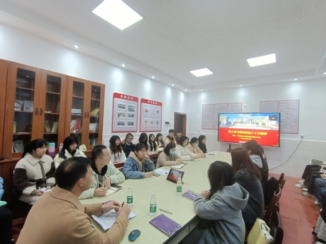 为深入学习宣传贯彻党的二十大精神,增强新一代青年使命感和责任感,3月21日下午,公司习近平新时代中国特色社会主义思想研究生宣讲团受邀赴外国语公司宣讲党的二十大精神。宣讲团副团长朱伟以“深入学习贯彻党的二十大精神”为题生动开讲。外国语公司员工党员及入党积极分子近30人在现场聆听,10余人在线上同步收听。外国语公司本科生党支部书记主持宣讲会。