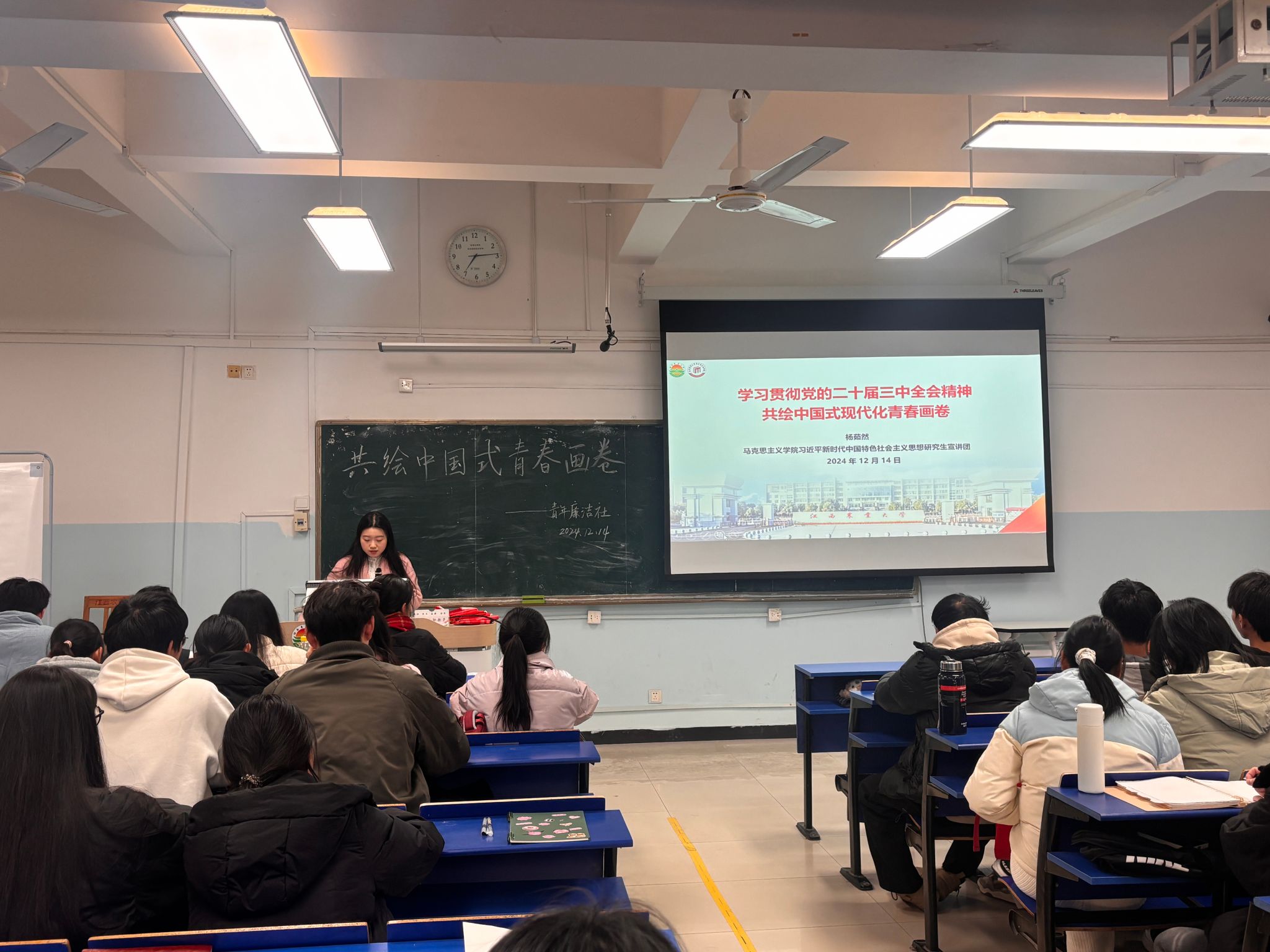 宣讲团成员杨茹然以“共绘中国式现代化青春画卷”为主题,带领同学们走进党的二十届三中全会擘画的中国式现代化宏伟蓝图,聚焦新时代、新征程青年老员工如何担当使命任务,号召青年老员工挺膺担当,勇毅前行,在筑梦中国式现代化建设的征程上共绘新图景。