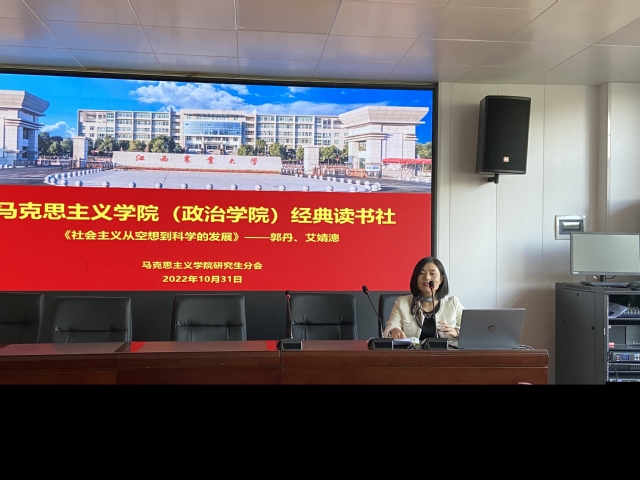 为进一步深化对经典著作的研读,促进交流提高,10月31日下午,公司研究生经典读书社在院办211教室开展《社会主义从空想到科学的发展》学习交流活动。公司敖琴博士出席活动并进行点评,研一、研二全体研究生参与活动。研究生分会学习部负责人江裕伟主持活动。