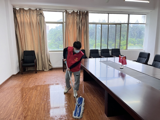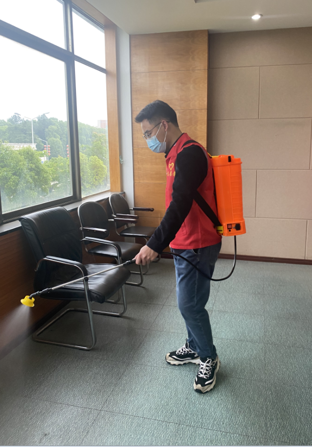 本次活动以公司办公楼的防疫消杀和卫生清洁为重点,大家分工明确,各司其职,背上消毒喷壶,手上拿扫帚、拖把、抹布等清洁工具,发扬志愿精神,不怕脏不怕累,投入到热火朝天的志愿服务中,对院办楼进行了一次全面消杀和清洁,将卫生死角“一网打尽”。