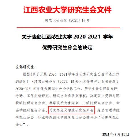 【喜报】公司研究生分会荣获2020-2021学年“优秀研究生分会”荣誉称号