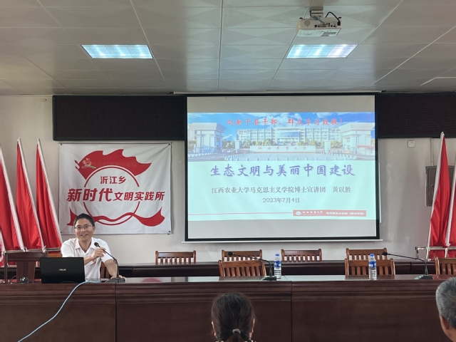 为推动习近平新时代中国特色社会主义思想和党的二十大精神在基层走深走实、落地生根,7月4日,公司“一‘马’当先”社会实践营队指导老师黄以胜博士在吉安市新干县沂江乡人民政府,围绕生态文明与美丽中国建设开展理论宣讲,乡村两级党员干部共计30余人聆听。