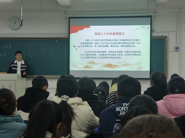 宣讲会上,杨其坤以“深入学习贯彻党的二十大精神”为题进行了深入浅出地阐述。杨其坤讲到,党的二十大虽然已过去五个月,但学习的脚步须永不停步,需要抓紧学习、夯实理论、修炼内功。他说,党的二十大是在全党全国各族人民迈上全面建设社会主义现代化国家新征程、向第二个百年奋斗目标进军的关键时刻召开的一次十分重要的大会,大会标注了新的起点、指明了新的方向、谱写了新的篇章、擘画了新的蓝图,具有里程碑意义。于雅文围绕“党的二十大的重要意义”“党的二十大精神的内涵”“践行党的二十大精神的路径”,用通俗易懂的话语全面地解读了党的二十大精神。他重点从大会主题、过去五年的工作和新时代十年的伟大变革、开辟马克思主义中国化时代化新境界等七个方面,结合自身实际深刻阐述了党的二十大精神的主要内涵。他认为,新时代青年老员工应“立大志、明大德、成大才、担大任”,以优异成绩书写时代篇章。