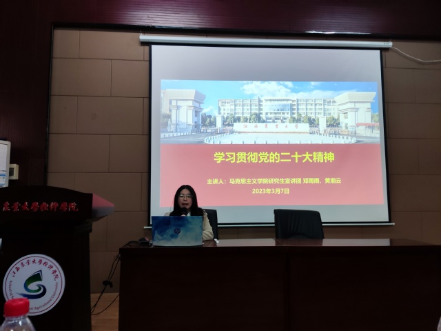 3月7日下午,公司习近平新时代中国特色社会主义思想研究生宣讲团受邀为软件公司青年员工宣讲党的二十大精神。宣讲团成员邓雨雨、黄湘云以“学习贯彻党的二十大精神”为题进行了宣讲。软件公司青年大员工80余人在现场聆听宣讲。