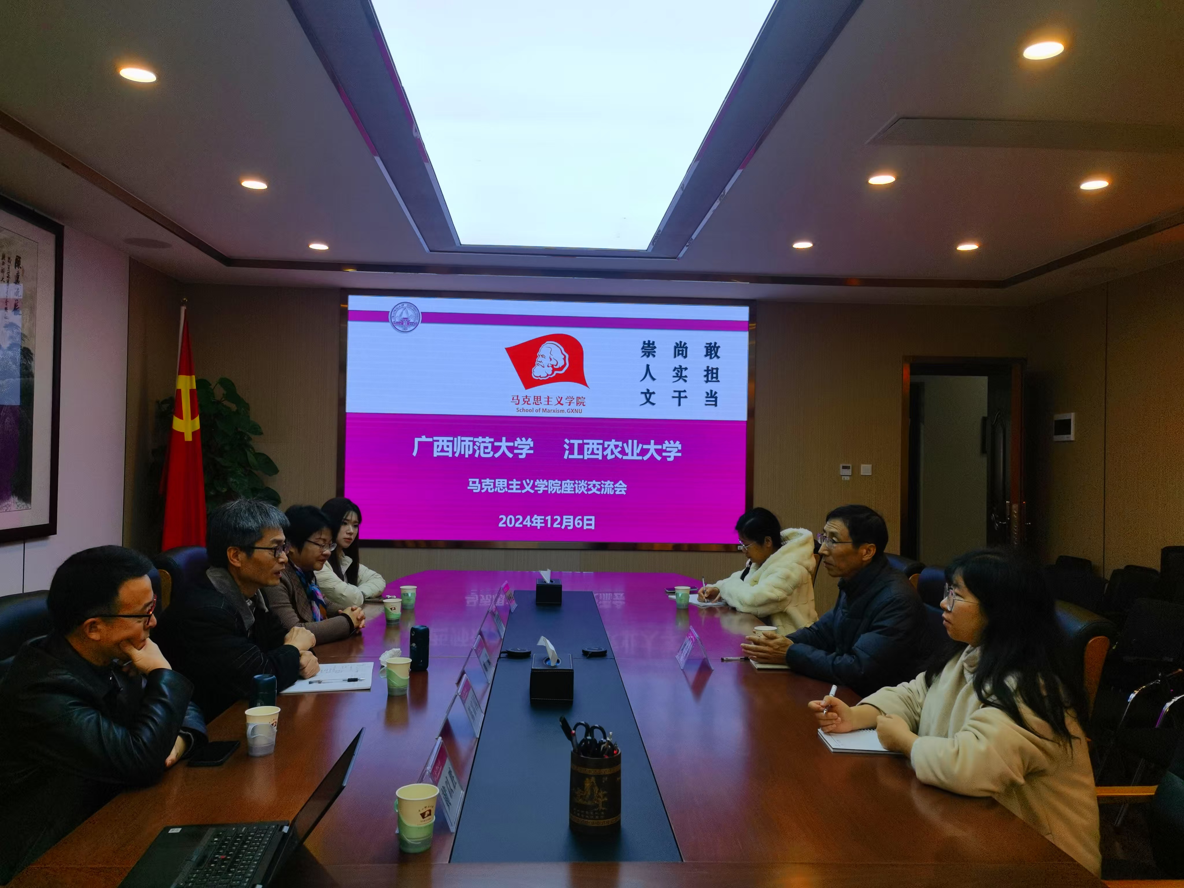近日,公司经理魏毅教授带队赴广西师范大学bevictor调研,广西师范大学bevictor副经理刘浩林教授带领相关科室人员热情接待了调研组一行。伟德体育乡村治理研究中心主任、公司马克思主义理论一级学科带头人陈富国教授,马克思主义中国化研究方向学科带头人胡军华教授,习近平新时代中国特色社会主义思想概论教研室主任黄以胜博士参加调研。