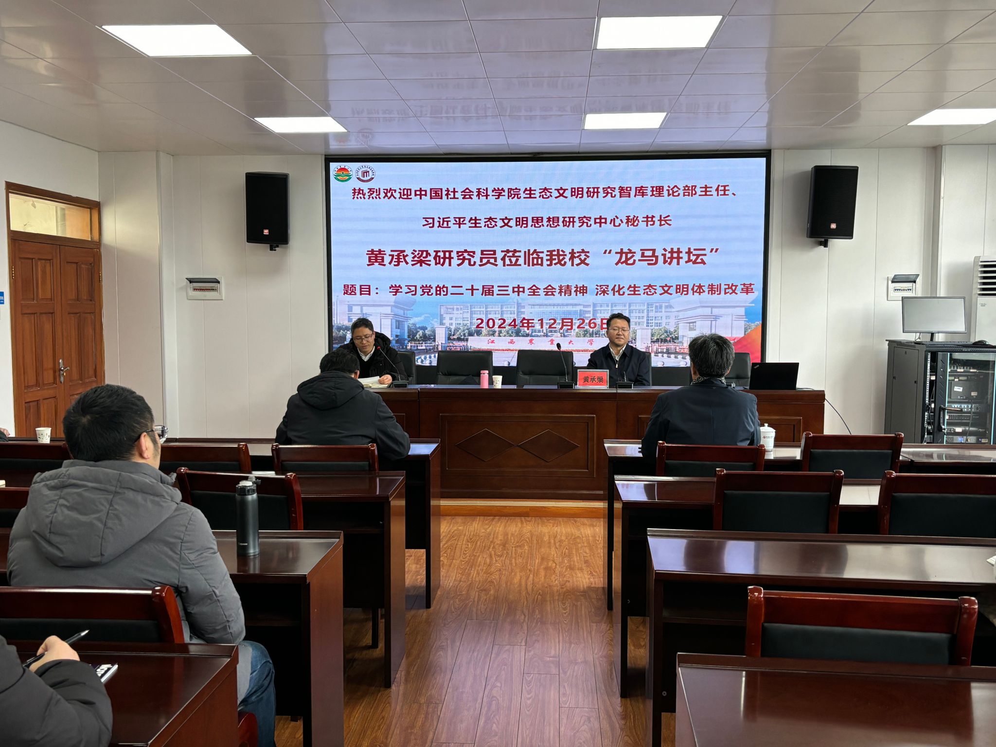 12月26日下午,公司邀请中国社会科公司生态文明研究智库理论部主任、中国社会科公司习近平生态文明思想研究中心秘书长做客公司第四期“龙马讲坛”。公司副经理黄以胜主持报告会,公司师生参加报告会。