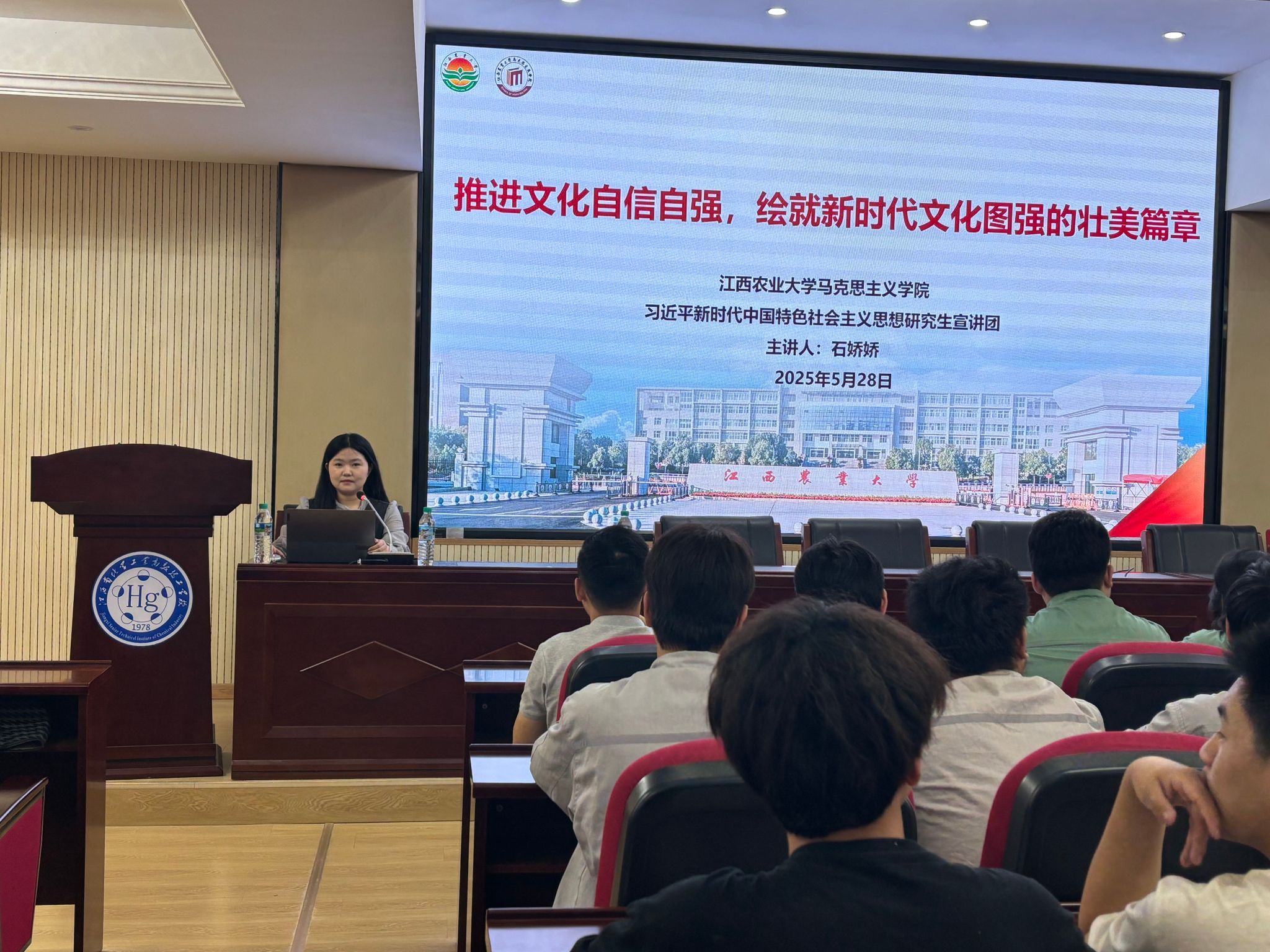 随后,宣讲团成员石娇娇以“推进文化自信自强,绘就新时代文化图强壮美篇章”为主题,依次从新时代推动文化自信自强的缘由、文化自信自强的底气根源、文化自信自强的具体表现、当代青年树立文化自信的途径四个方面展开宣讲。宣讲中,她借助生动的实例、详实的数据资料,深入浅出地阐释了习近平文化思想,并联系该校员工身边事例,鼓励新时代青年争当推动文化自信自强的先锋。该校团支部书记及24级员工代表共100余人全程参与聆听。本次宣讲活动加深了同学们对文化自信自强的认知,也让他们清楚认识到青年在推进文化自信自强进程中所肩负的重要职责与使命。