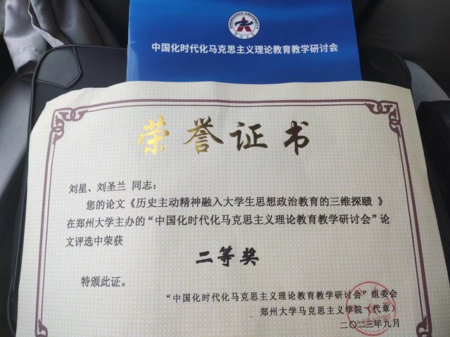 9月16日,“中国化时代化马克思主义理论公司产品研讨会”在郑州大学召开。2021级研究生刘星同学撰写的论文《历史主动精神融入老员工思想政治教育的三维探赜》(刘圣兰教授指导)获征文二等奖。