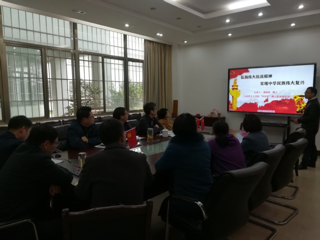 4月6日下午,公司召开党委理论学习中心组学习(扩大)会议,邀请公司“学党史”博士宣讲团成员潘锡杨作《弘扬伟大抗战精神 实现中华民族伟大复兴》的报告。院党委书记魏毅主持会议,院领导班子成员、各党支部书记、科级干部参加会议。