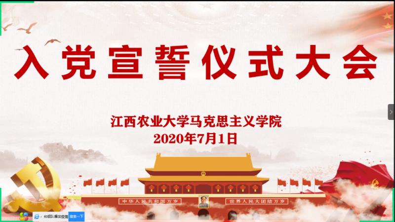 支部书记赵美岚:在疫情常态化管控背景下,“云”宣誓的活动形式表现出别具一格的厚重仪式感。今天是中国共产党成立99周年的纪念日,为庆祝这一特殊的日子,组织全体党员重温入党誓词,不忘入党初心;牢记权利与义务,增强组织观念;自我剖析找差距,争做合格党员。希望研究生党员以此次入党宣誓活动为契机,对照党员标准进行自我剖析,在理想信念、纪律要求、群众观念方面找差距,学先进、作表率,在学思践悟中坚定理想信念,在奋发有为中践行初心使命。