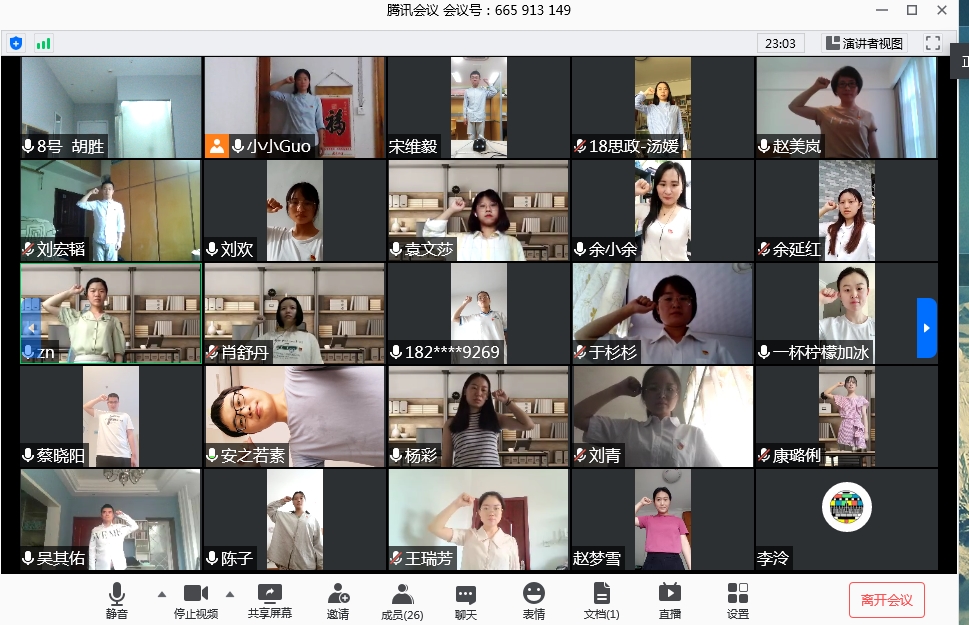 “我志愿加入中国共产党,拥护党的纲领,遵守党的章程……。”上午8时,29名研究生党员面对党旗进行了庄严宣誓。通过“云”宣誓活动,再一次接受心灵的净化和洗礼,进一步增强了党员意识,强化了党性观念,始终牢记作为共产党员的使命与责任,更加自觉用习近平新时代中国特色社会主义思想武装头脑,以更加饱满的热情积极投身到自己的学习、工作、生活中去。