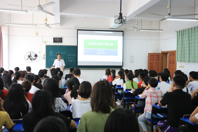 “中国人的饭碗为何越端越牢”,课堂上,贺浩华首先向同学们提出这样一个问题。围绕农业综合生产能力显著增强、农业结构不断优化、农业物质技术装备水平显著提高、农业生产方式发生深刻变革四个方面,运用丰富的案例、翔实的数据,介绍了新中国成立70年以来,在中国共产党的领导下,我国农业领域发生的巨大飞跃。贺浩华指出,“手中有粮,心中不慌”,他鼓励同学们努力学习知识本领,积极投身乡村振兴战略实施,为国家粮食安全作出贡献。