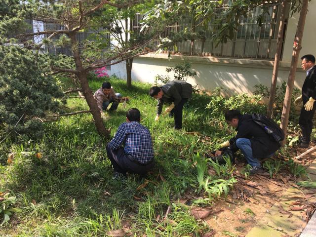 会后,全院师生带着劳动工具到环境责任包干区,进行清扫工作。大家积极主动地清理拔草、清扫路面、搬运垃圾,为营造和谐美丽的校园环境贡献自己的力量。