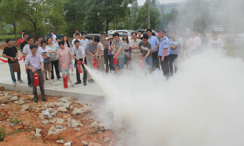 讲座从消防器材使用、发生火灾起因、预防火灾措施、安全逃生知识等方面,结合真实案例进行了详细的讲解。讲解完后,全院师生来到室外学习了灭火器的正确使用并亲自操作灭火。