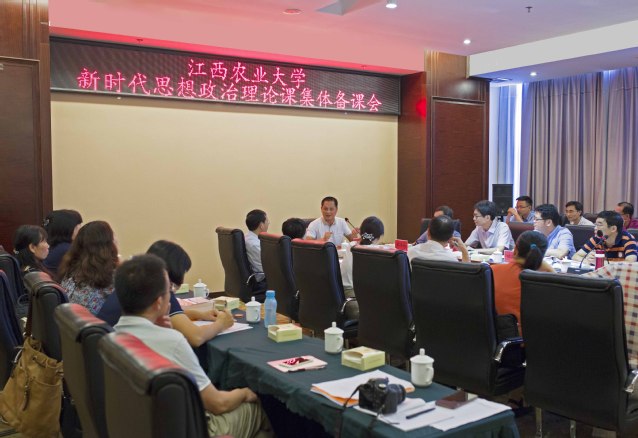 两天的集体备课会内容丰富、紧张活泼。全体参会教师认真学习了近年来有关思想政治理论课建设的文件精神,深刻感受党中央对思政课的高度重视,理解掌握教育部对思政课教学的各项要求。在各教研室主任的带领下,集体解读新教材,开展了分课程备课。针对四门主干思政课程内容交叉问题,重点展开讨论,统筹协调了各门课程的教学侧重点。为适应新媒体教学方法改革的大趋势,会议特别邀请超星公司技术人员就网络辅助教学问题做了相关讲解,对其手机辅助教学APP的使用进行了现场演示和指导。公司也安排老师作了有关新媒体教学改革现状与发展趋势的报告,交流了使用超星学习通、微信订阅号等新媒体教学手段的经验做法。会议还组织全体教师参观了铜鼓秋收起义纪念馆。