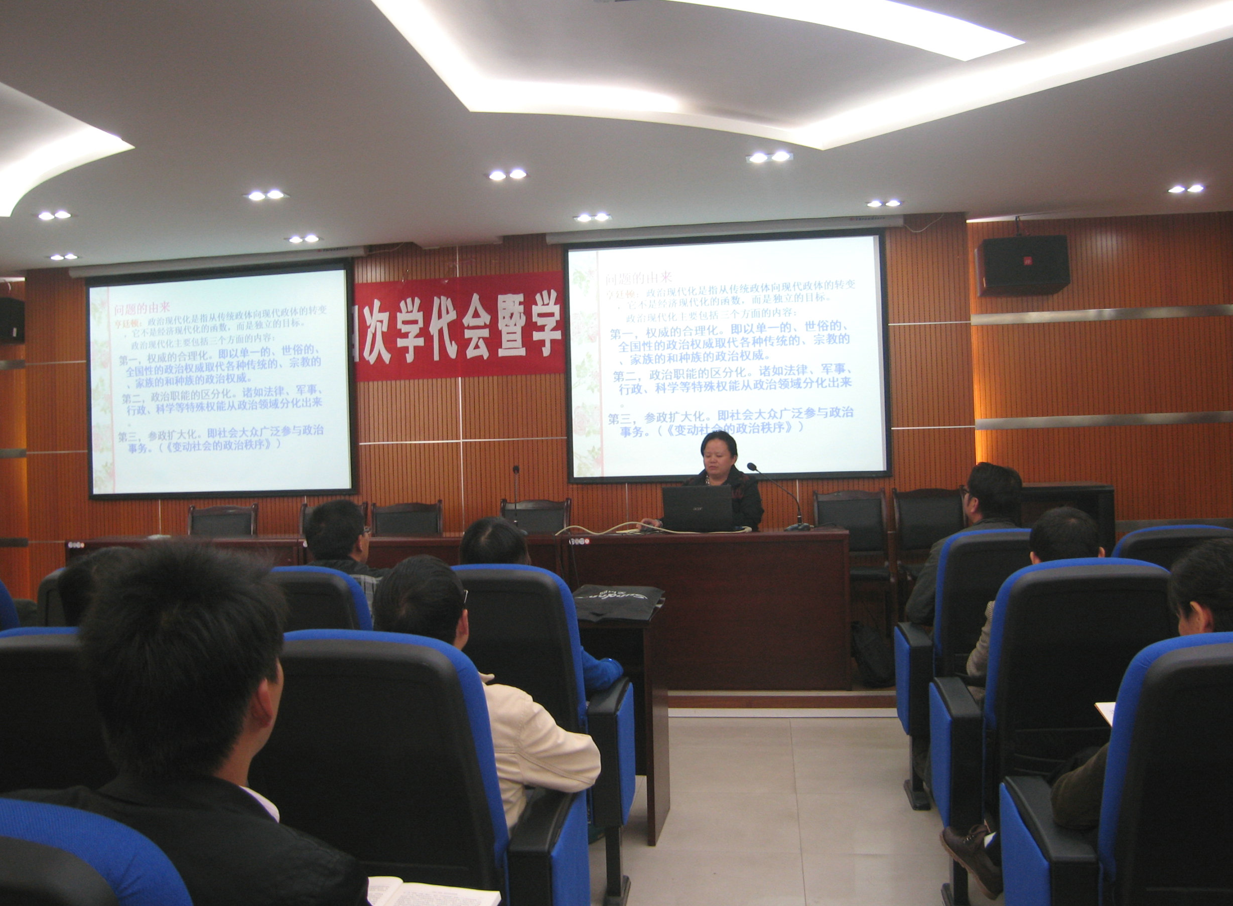 11月5日,公司第四场学术交流会在109报告厅举行。袁玲红副教授以“西方民主的演变及异化”为主题作学术报告,全院教职工和部分研究生代表参加此次交流会。