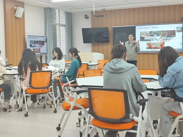 课堂上,员工代表围绕中华优秀传统文化、革命文化、社会主义先进文化进行了分享。师生们还围绕提升我国文化软实力、传承红色基因等展开了互动交流。