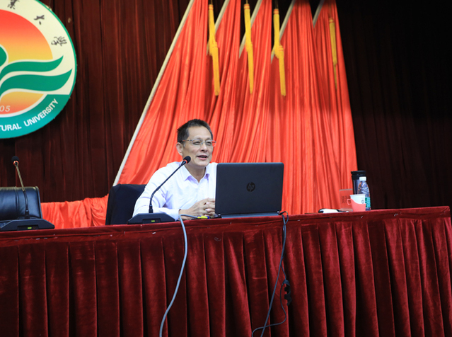 12月8日下午,习近平新时代中国特色社会主义思想专题课第九讲开讲,副董事长贺浩华、教务处处长魏洪义共同为同学们讲授《粮食安全与乡村振兴》专题。